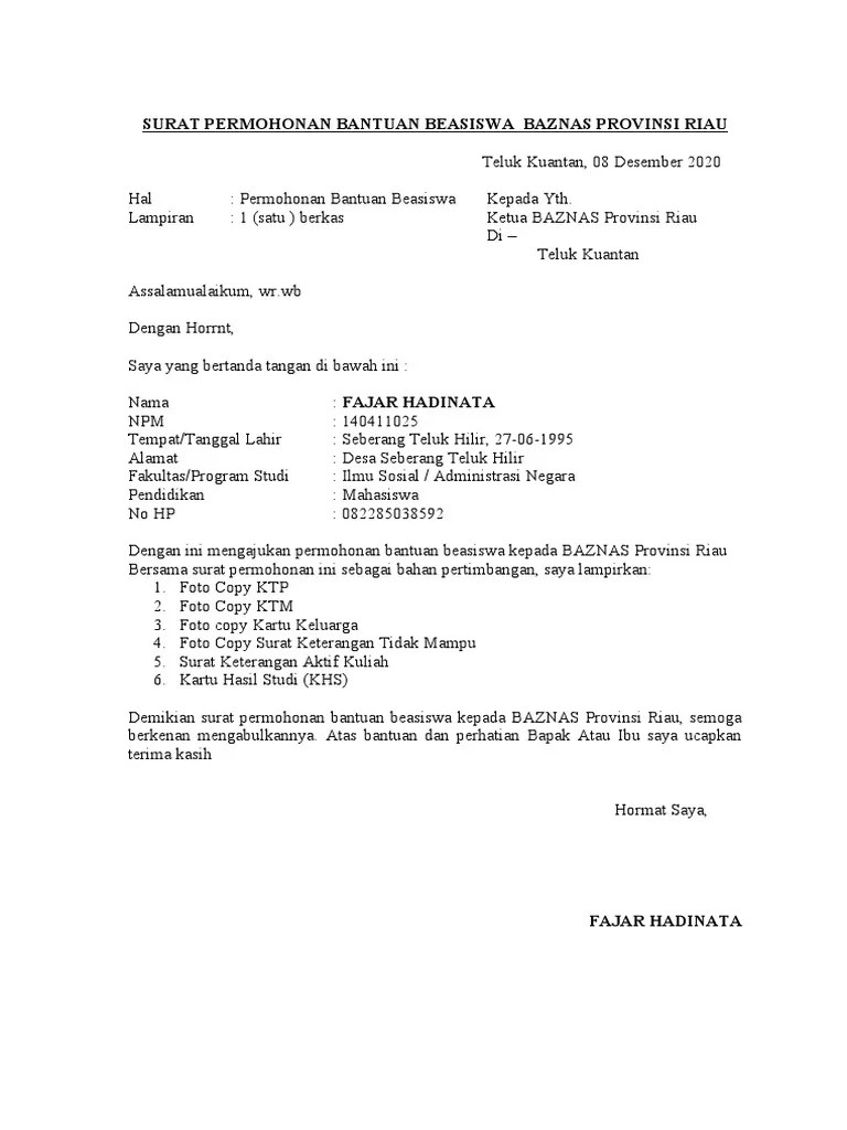 Contoh Surat Permohonan Bantuan Beasiswa Ke Baznas - 25 Contoh Surat Permohonan Beasiswa Terlengkap Contoh Surat. Contoh surat panggilan karena tidak masuk kerja; Contoh surat keterangan menerima siswa pindahan sd; Contoh surat permohonan beasiswa tanpa kop surat digunakan ketika penyelenggara tidak memberikan format tertentu kepada para calon penerima. Contoh surat izin orang tua untuk menikah; Oleh sebab itu, dalam surat permohonan beasiswa ini tidak memiliki kop surat di atasnya. Contoh proposal 17 agustus ke 72 contoh proposal 17 agustus contoh proposal 17 agustus pdf contoh proposal 17 agustus 2017 pdf contoh proposal 17 agustus ke 72 contoh proposal paper contoh proposal usaha contoh proposal kebidanan contoh proposal pdf contoh proposal kewirausahaan.